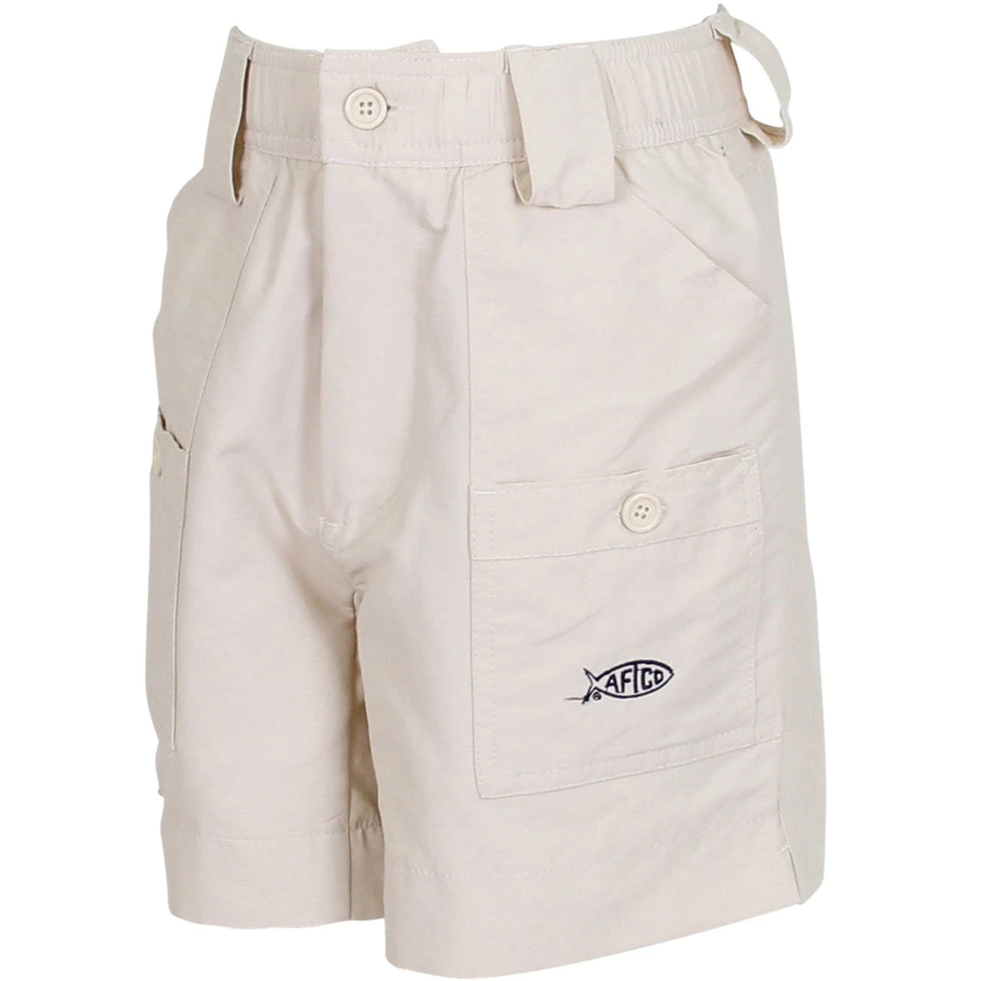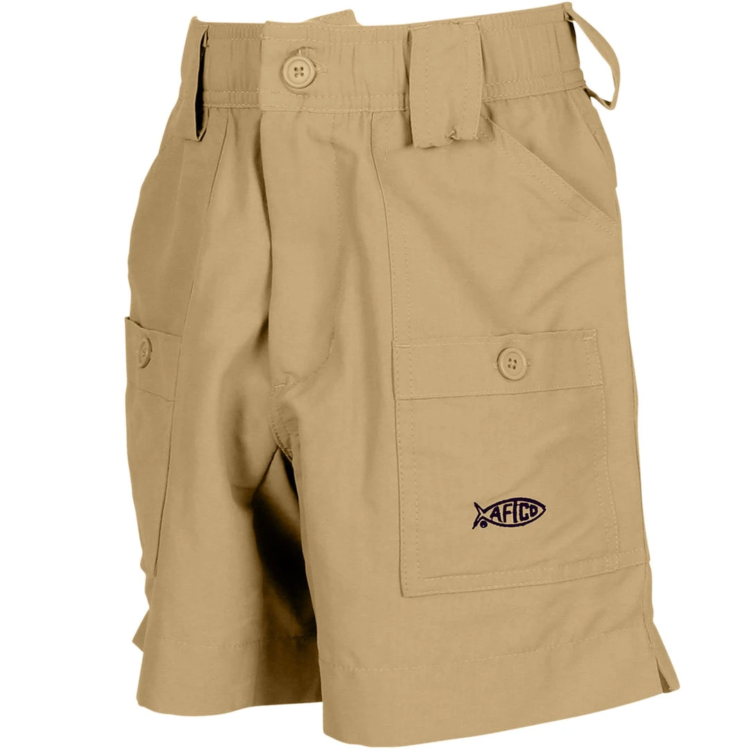 The “Original” AFTCO short, is now offered in kids sizing! Introduced in 1989 the “Original” AFTCO fishing short has been the choice of serious fishermen nation-wide. These AFTCO shorts for kids are constructed of Dupont Supplex 3-ply nylon and has been treated with a stain resistant coating. It is a extremely strong and supple fabric that is also lightweight and super comfortable day in and day out. Included these shorts have 7 pockets (including a cordura-lined pliers pocket) so you will have a place for everything. It also has a double layered rear for extra strength. 27 bar tacks keep these fishing shorts strong in all the right places. AFTCO embroidery on the left pocket. Elastic waist + belt loops. AFTCO kids shorts are built to handle all they can throw at them.