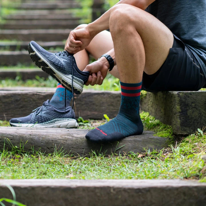 Single track bliss or rugged technical scrambles, the targeted cushioning of the NEW Tempo men’s running sock balances ultra-lightweight performance with micro crew coverage. Knit with climate-controlling Merino Wool, its redesigned flex and arch support zones equal our most dialed offering yet.