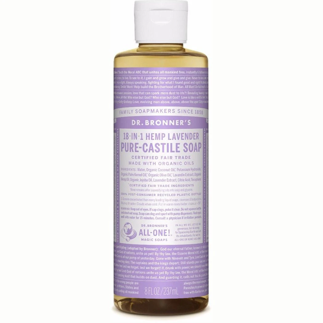- Dr. Bronner’s 18-in-1 Pure-Castile Soaps are good for just about any cleaning task. Face, body, hair & food, dishes, laundry, mopping, pets-clean your house and body with no synthetic preservatives, detergents or foaming agents-none! Dilute! Dilute!