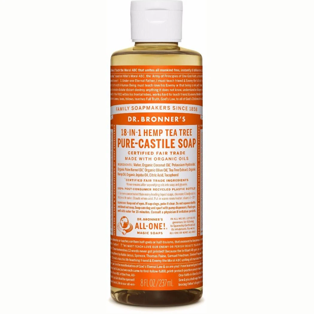 - Dr. Bronner’s 18-in-1 Pure-Castile Soaps are good for just about any cleaning task. Face, body, hair & food, dishes, laundry, mopping, pets-clean your house and body with no synthetic preservatives, detergents or foaming agents-none! Dilute! Dilute!