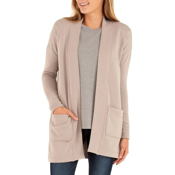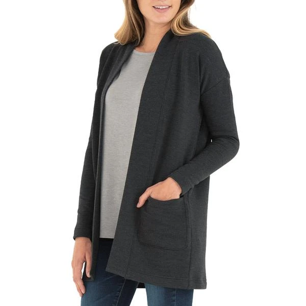 Stretchy Thermal Fleece meets everyday style. This flattering cardigan features extra length for comfort and warmth.
