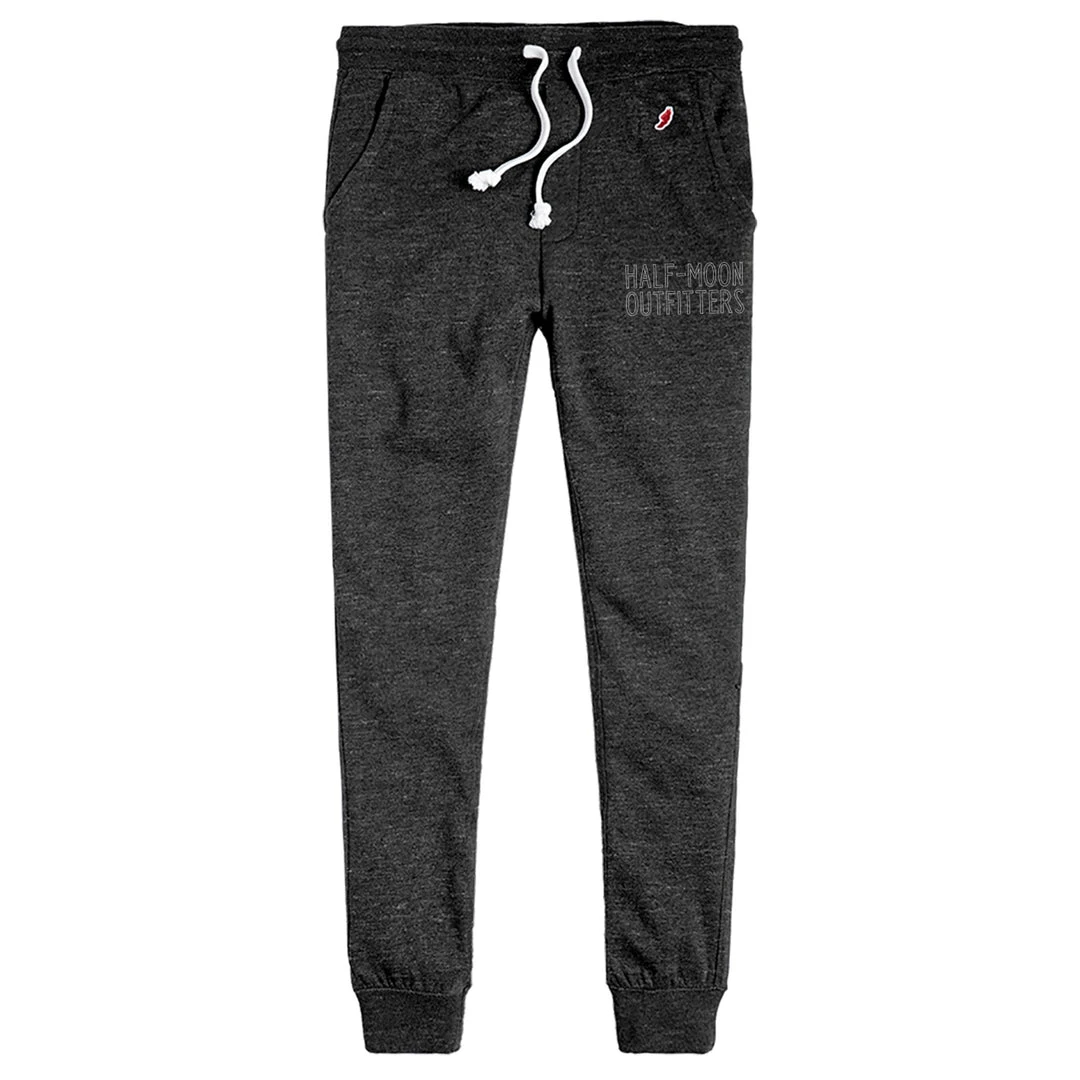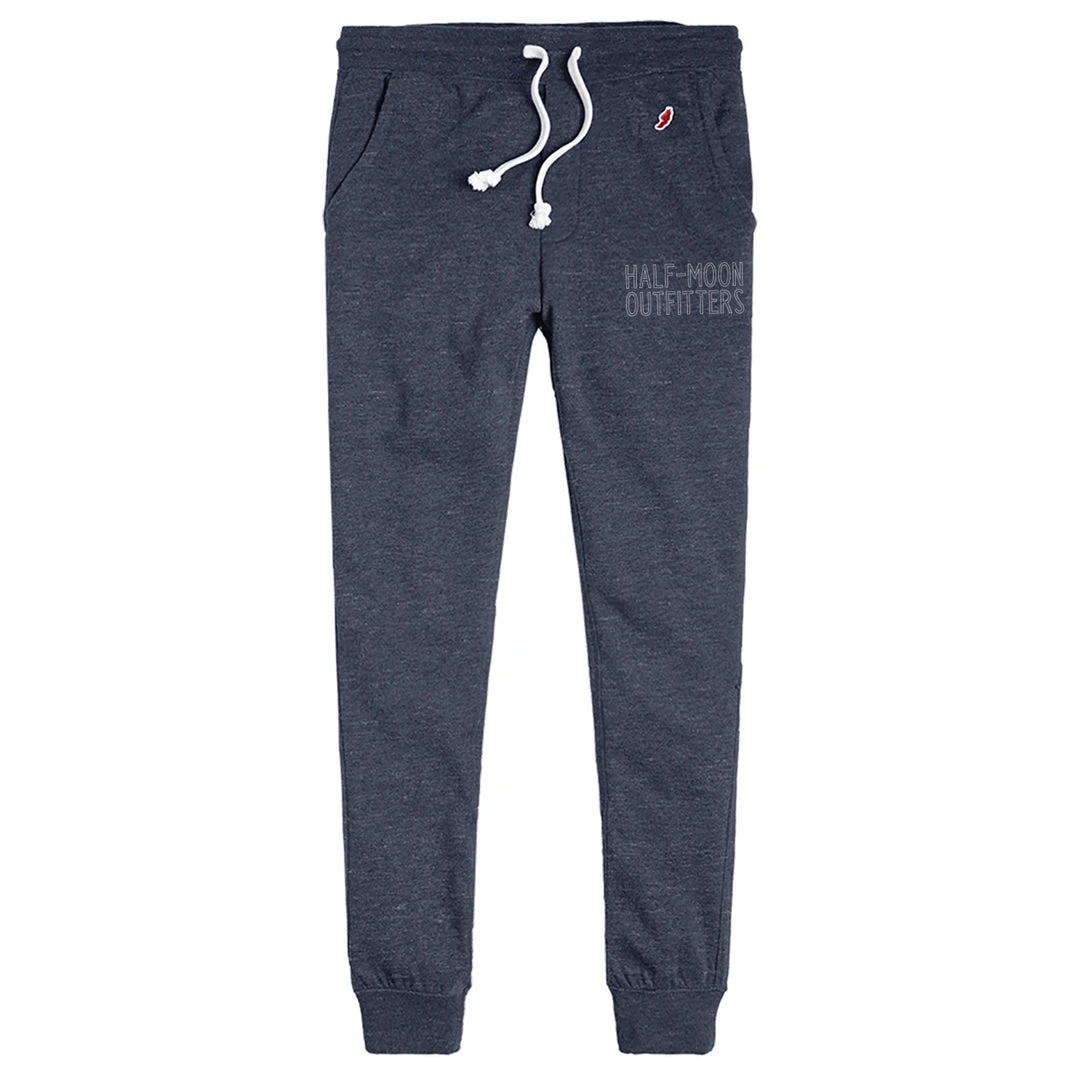 The Half-Moon Outfitters Block Outline Tri-Blend Joggers are from the Tri-Blend Fleece Collection and are made with ultra-soft tri-blend fleece and includes all-American wardrobe staples.