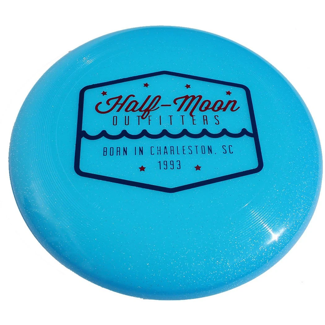The Half-Moon Outffiters Badge Logo Frisbee features the Half-Moon Badge logo in the center of the disc
