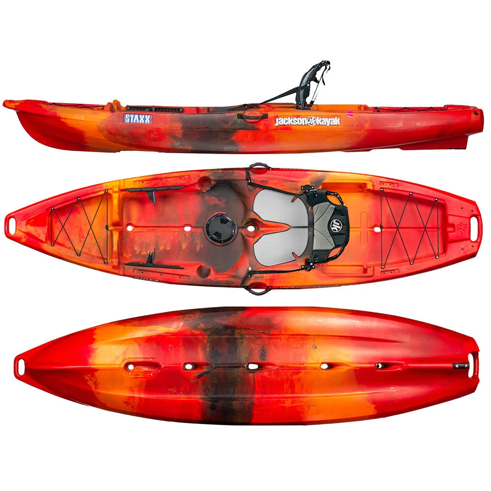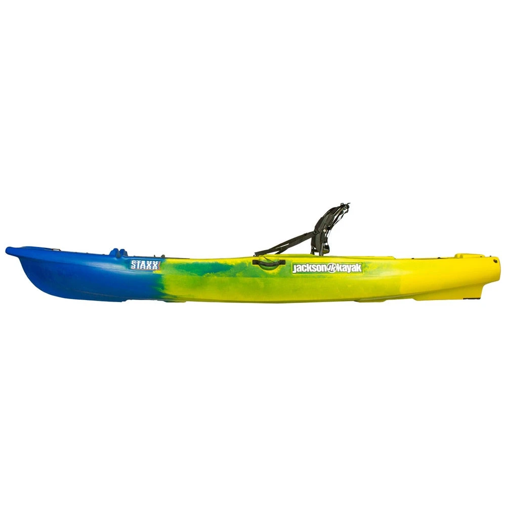 Top-end performance and design in an economical package..? We’ve got you! The Staxx was designed by Tony Lee – the same leading designer who brought you all of Jackson’s classic performance kayaks. This kayak doesn’t stop at the end of your stroke – it glides on! The Staxx doesn’t skimp on comfort, offering an incredible kayaking experience versus others in its class. The Staxx also has the convenience of easy storage with a folding seat back that allows it to be stowed away or stacked. This boat is made for families who need a fleet for their own adventures. It comes ready to be customized with gear tracks and a unique Fishing Kit capable of turning this ride into a fishing machine. Most importantly, the Staxx gives you the REAL kayaking experience at an economical pricepoint. Jackson Kayak prides itself in bringing new kayakers to our community, and the Staxx does just that!