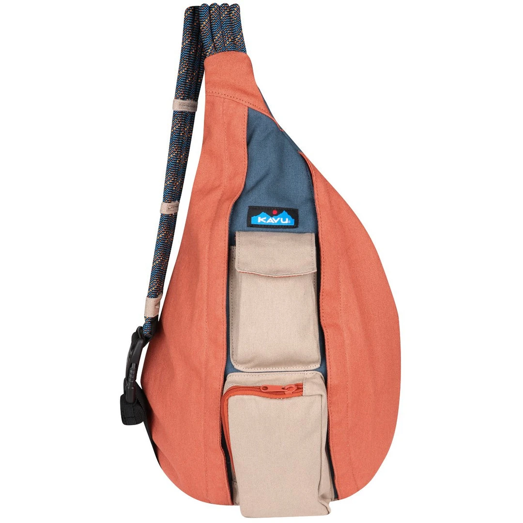 The KAVU Rope Bag has so many uses. It’s a durable day pack you can use on the trail or around town, and the perfect travel companion. It’s functional enough for daily use and stylish enough to make a statement. Plus, there are so many sporty patterns to choose from. It also holds more than you’d expect considering its slim, snug-fitting design. The Rope Bag is consistently one of KAVU’s most popular bags – for good reason! Made of 12 oz. cotton canvas, the 11″ x 20″ Rope Bag features an adjustable rope shoulder strap, two vertical zip compartments, two key or cell phone pockets, and a padded back with KAVU embroidery.