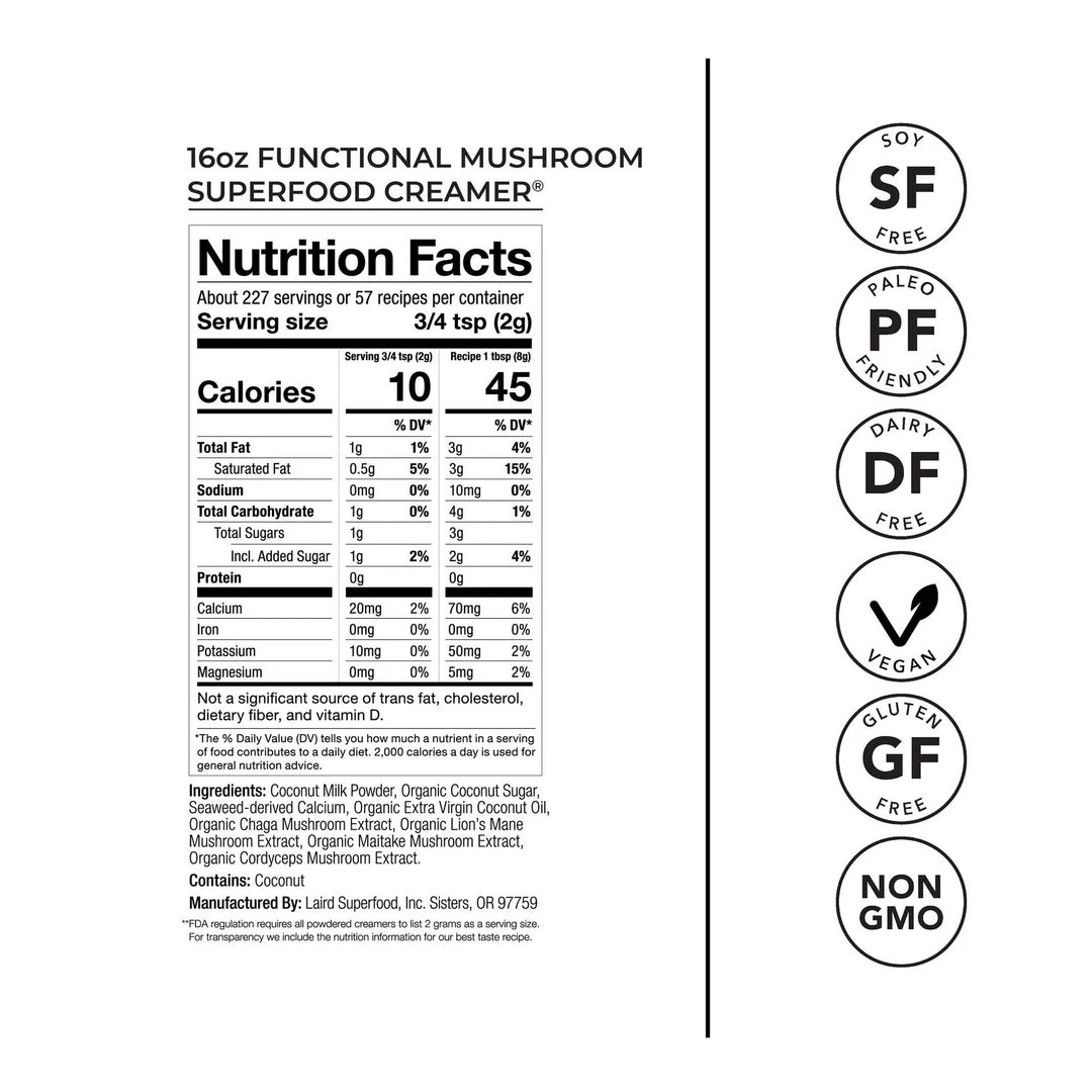 Superfood Creamer with Functional Mushrooms combines our award-winning Original Superfood Creamer with four of nature’s most energizing and nourishing mushrooms. Don’t worry, you won’t taste the mushrooms, only the delicious creamy flavor of our best-selling Original Superfood Creamer. This unique blend harnesses the power of our Superfood Creamer along with Chaga, Cordyceps, Lion’s Mane, and Maitake mushrooms, which have been valued in Eastern medicine for hundreds of years. This epic combination will add a delightful spark of energy and vibrancy to your day.