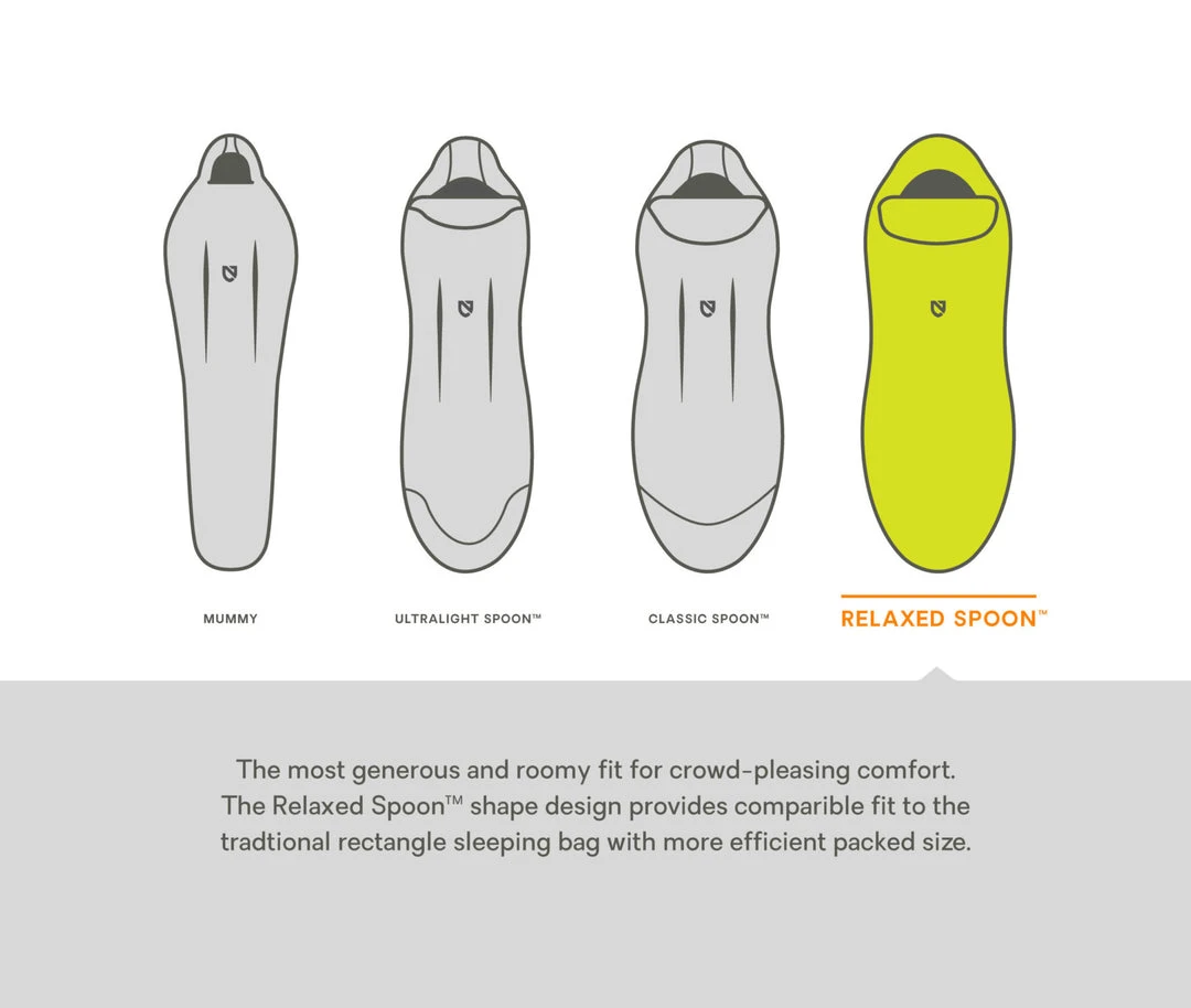 Seventy percent of people sleep on their side, yet mummy bags are not designed to accommodate this. The new Tempo™ blends roomy comfort with NEMO’s popular Spoon™ shape for a relaxed, crowd-pleasing fit that packs smaller than a rectangular sleeping bag. With a generous cut at the elbows and knees, side sleepers can shift positions comfortably throughout the night.