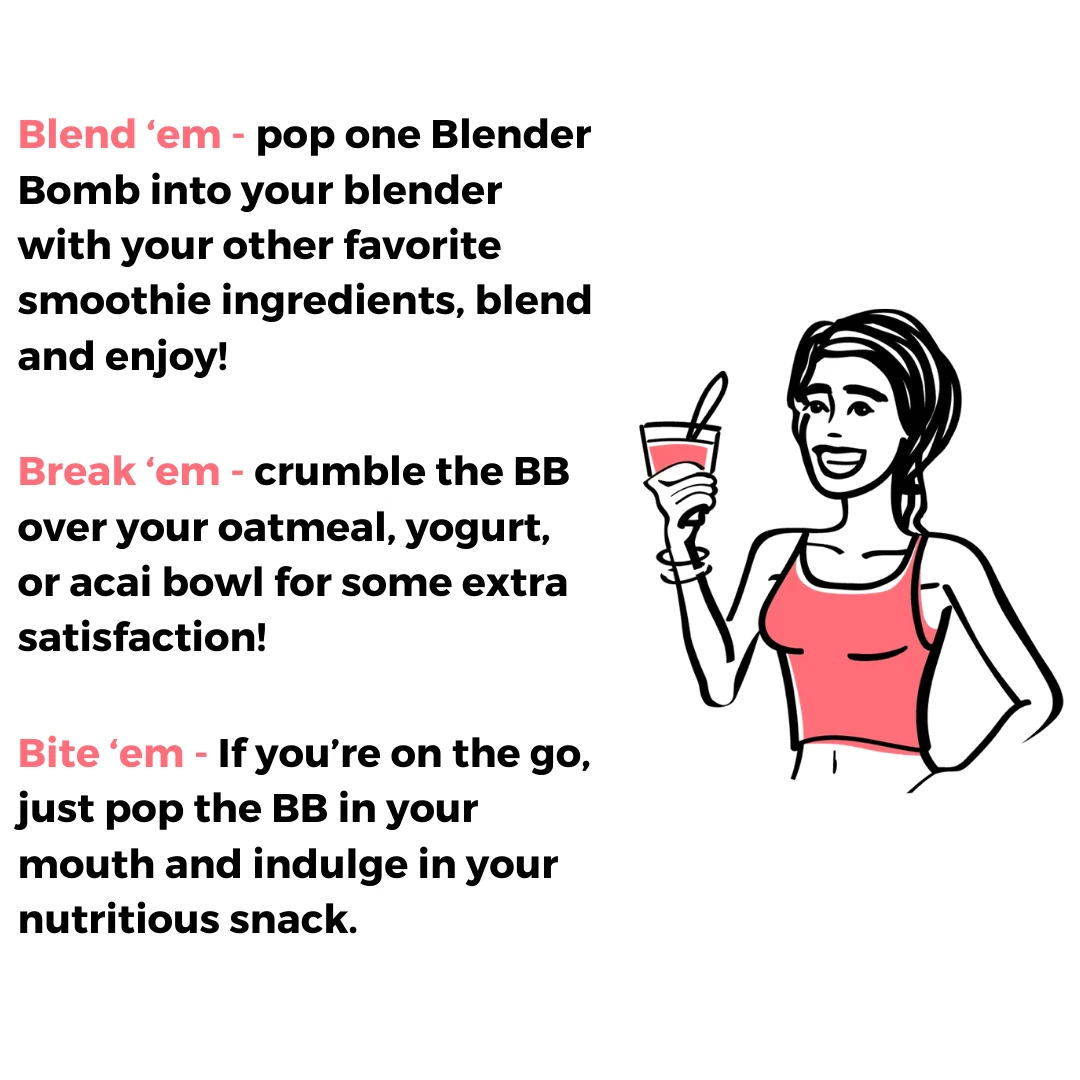 This Blender Bomb is the Christopher Columbus to America, the Paris Hilton to selfies and the Jane Fonda to workout videos. It’s the one that started it all, the OG. Perfectly simple and delicious. Packed with our core superfood ingredients, the Original Blender Bomb won’t have a fruity or a chocolatey flavor profile, so no acquired taste necessary. If you are a BB beginner, this flavor is a safe bet for you. No surprises, just superfoods and a stomach that stays full for hours. Bombs away! The combination of nuts, seeds, a date, and a little organic raw honey in a Blender Bomb, mixed in with the fruit in your smoothie, prevents your blood sugar from skyrocketing. The BB helps battle that mid-morning slump and temptation to snack. Even better – they are a simple solution to assist with weight loss and weight maintenance, all while ensuring you’re getting your daily dose of plant-based nutrition!