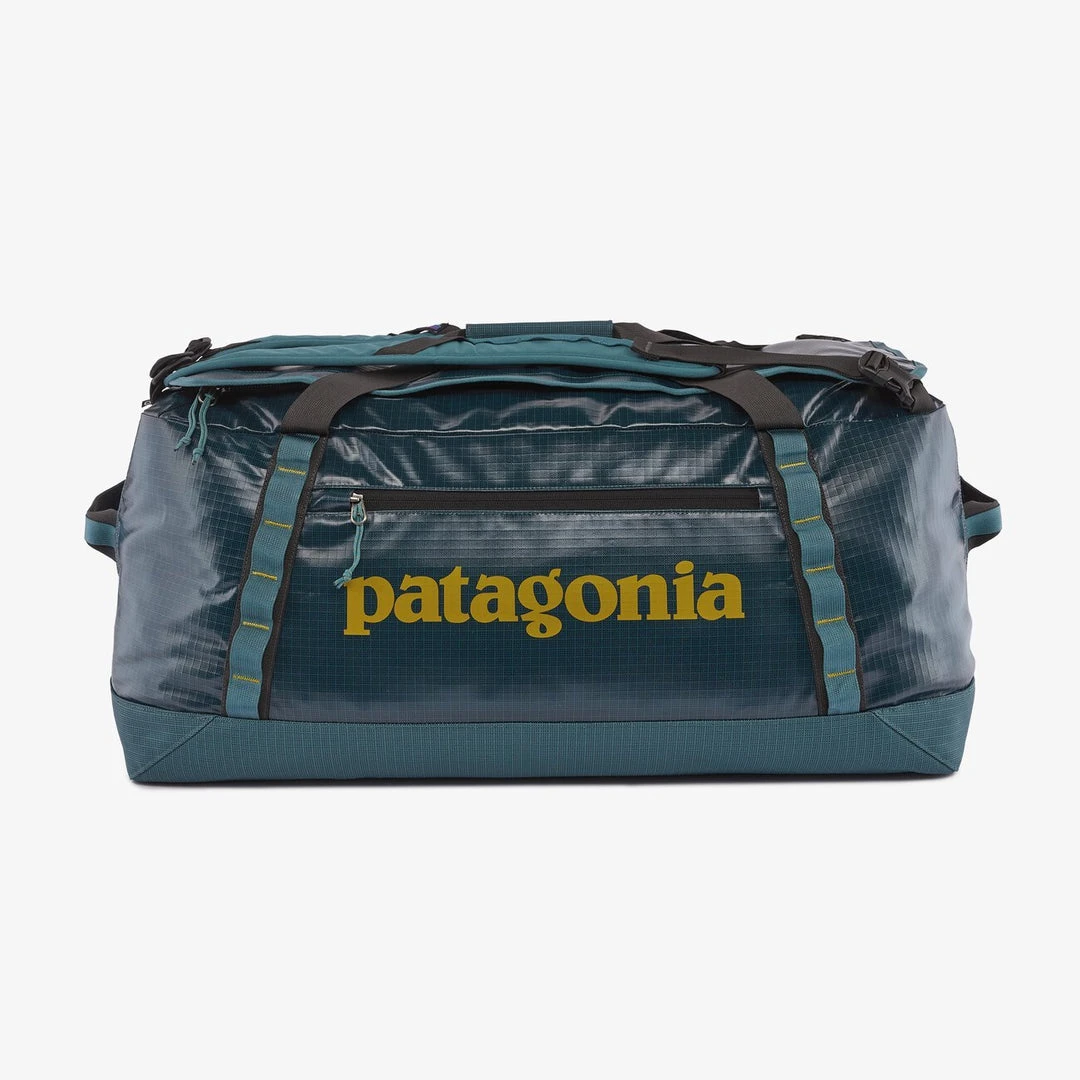 This large Black Hole Duffel easily swallows a week’s worth of stuff. Highly weather-resistant and stubbornly tough, it protects your gear from travel and rough handling. The main compartment opens via a zippered U-shaped lid, which has a pair of zip-closing mesh pockets on the underside for easily misplaced items like your headlamp and phone charger. A zippered exterior pocket holds all the stuff you need to access quickly. The padded bottom panel adds structure and helps cushion the load when your duffel gets the baggage-handler treatment. There are padded removable shoulder straps for a backpack carrying option, webbing handles with a snap closure and haul loops at either end that facilitate linking multiple bags. Four daisy chains let you lash additional gear to the outside. Made from 14-oz 900-denier 100% postconsumer recycled polyester ripstop (22% solution-dyed) with a TPU-film laminate and lined with 3.3-oz 200-denier 100% recycled polyester with a polyurethane coating. Both fabrics have a DWR (durable water repellent) finish.