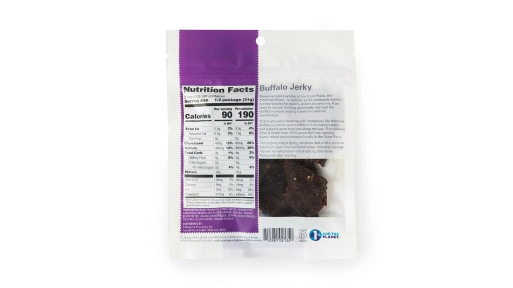 Made from 100% grass-fed American buffalo (bison) that graze the Great Plains, the way they have for centuries. Lightly seasoned and dried for a robust, pleasingly chewy snack that’s both portable and nutritious.