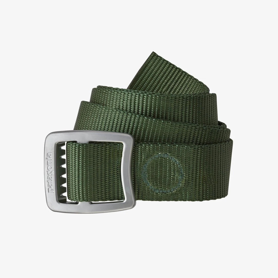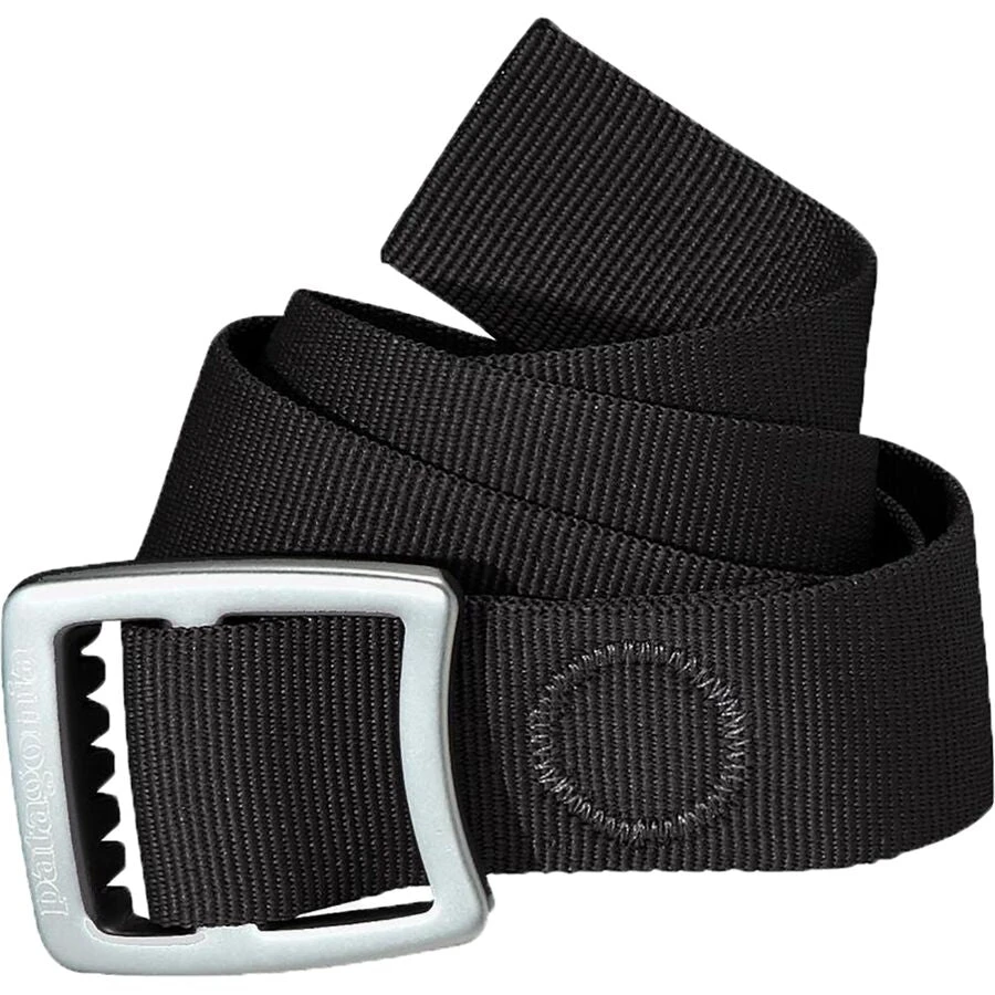Burly recycled nylon-webbing belt, with anticorrosive aluminum buckle, can be used in a pinch as a lash strap or bottle opener.