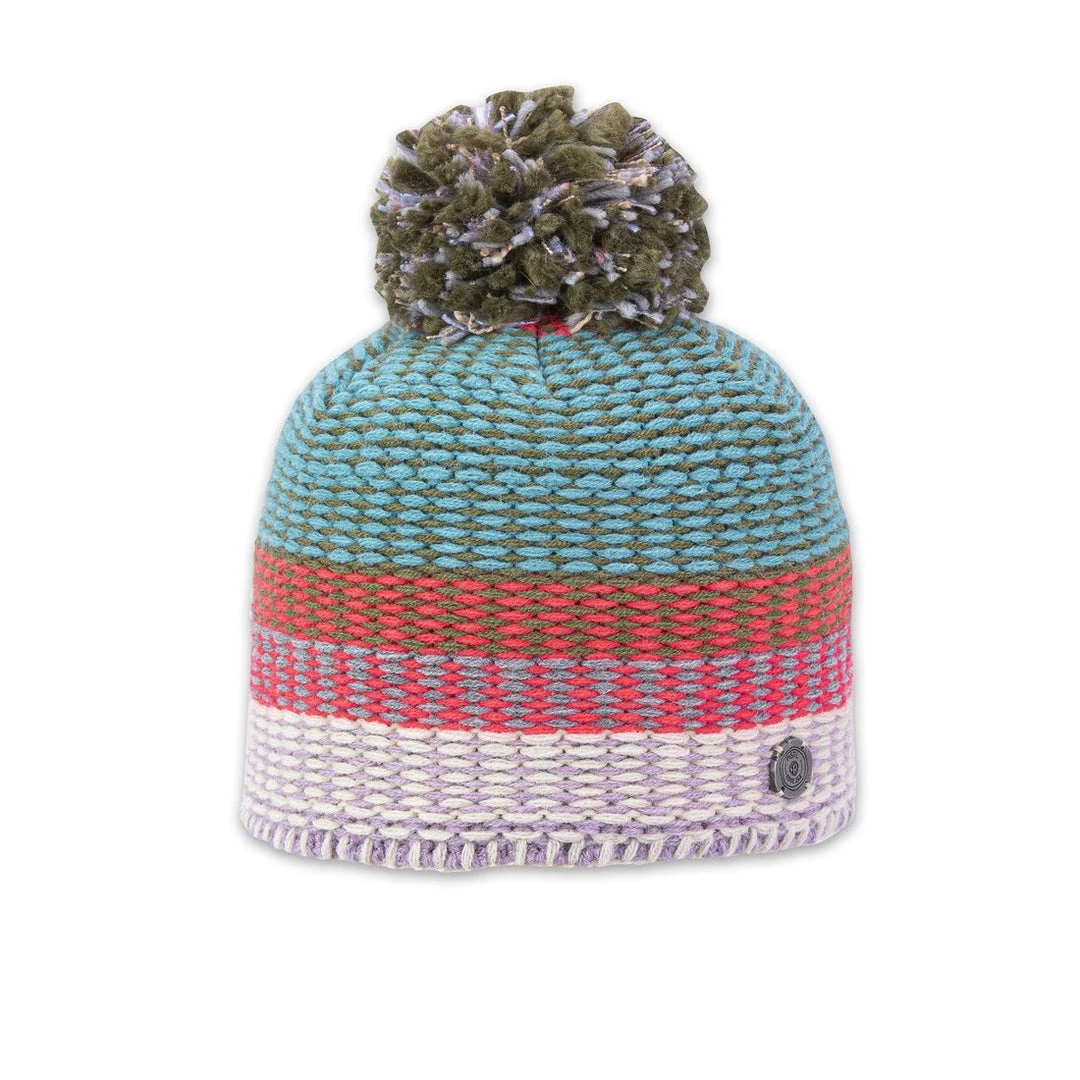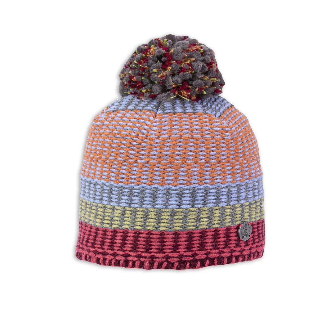 Shine on through fall and winter. The eye-catching Circus is a soft and colorful beanie that brightens storm-cloud days. This women’s hat is made of polyester and acrylic blend with varied-width yarn and a comfortable chenille earband lining. A big and playful multicolor pompom tops it off.