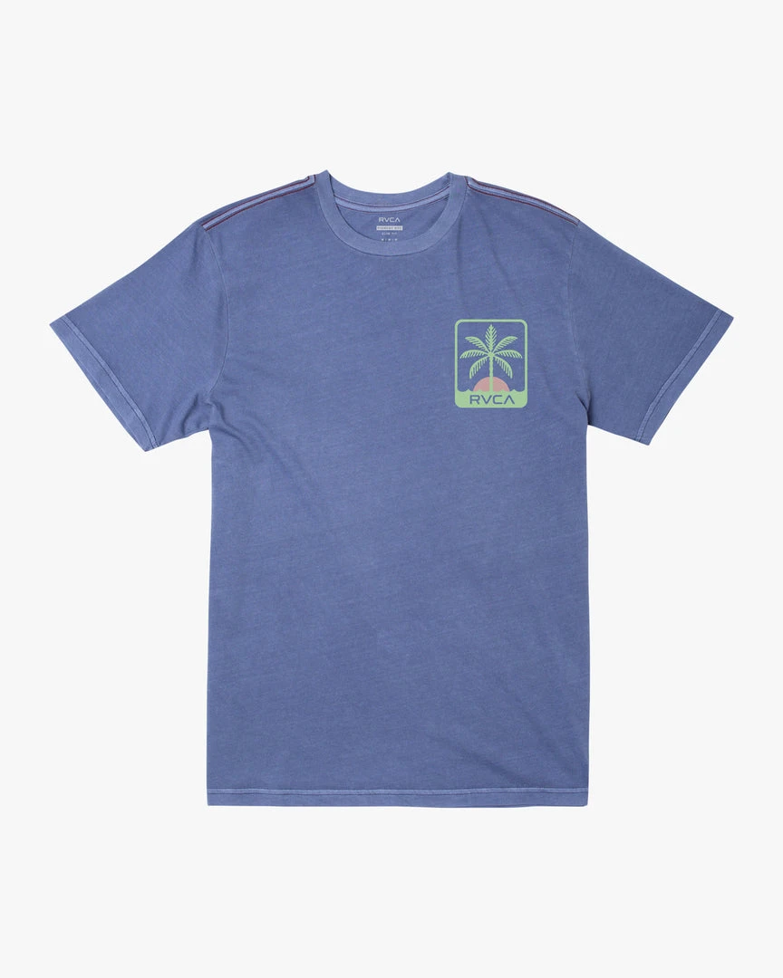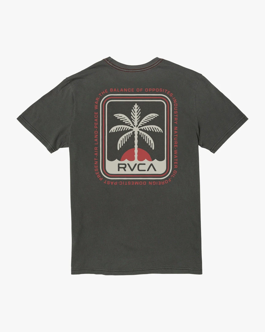 THE RVCA PALM BEACH TEE FEATURES UNIQUE GRAPHICS, A PIGMENT DYED WASH AND SLIM, TRIMMED DOWN FIT. MADE FROM SOFT COTTON JERSEY, THIS MEN’S ESSENTIAL TEE IS TOPPED WITH A CREW NECKLINE, SCREENED INSIDE NECK AND OUR SIGNATURE RED STITCH AT THE SHOULDERS.