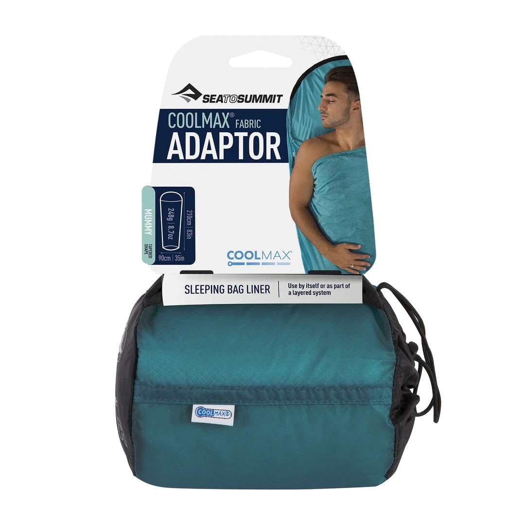 The Adaptor™ COOLMAX® sleeping bag liner is an excellent versatile choice that adapts to varied temperatures and humidity. The knitted COOLMAX® fabric is incredibly stretchy, super soft and luxuriously comfortable. It wicks moisture away from your skin, which helps keep you comfortable as temperatures rise and humidity increases, guaranteeing a great night’s sleep. This sleeping bag liner is ideal for use on its own in warm, humid climates, or as a liner inside your sleeping bag as you transition across seasons. A sleeping bag liner is imperative for keeping your sleeping bag clean and is easily washable. The COOLMAX® Adaptor™ liner is available in an Insect Shield® version for extra protection in buggy environments.