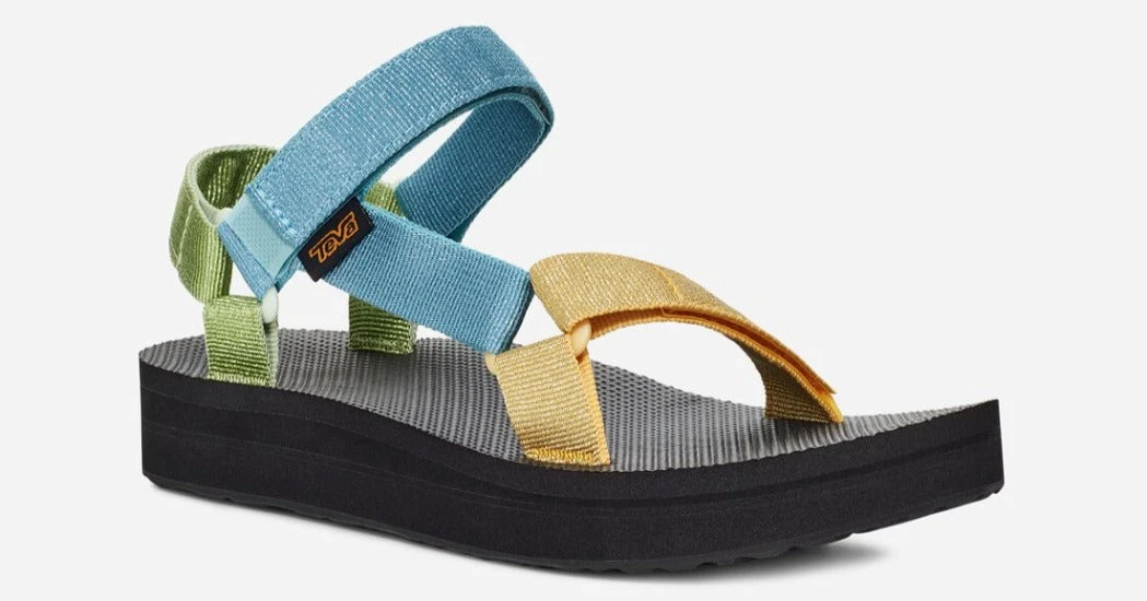 - The Universal Strapping System™ and earth-friendly recycled polyester webbing supports your foot and stands up to abuse, these sandals save 4 plastic bottles from ending up in landfills