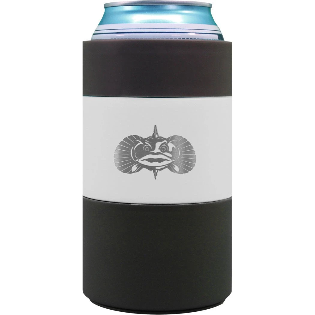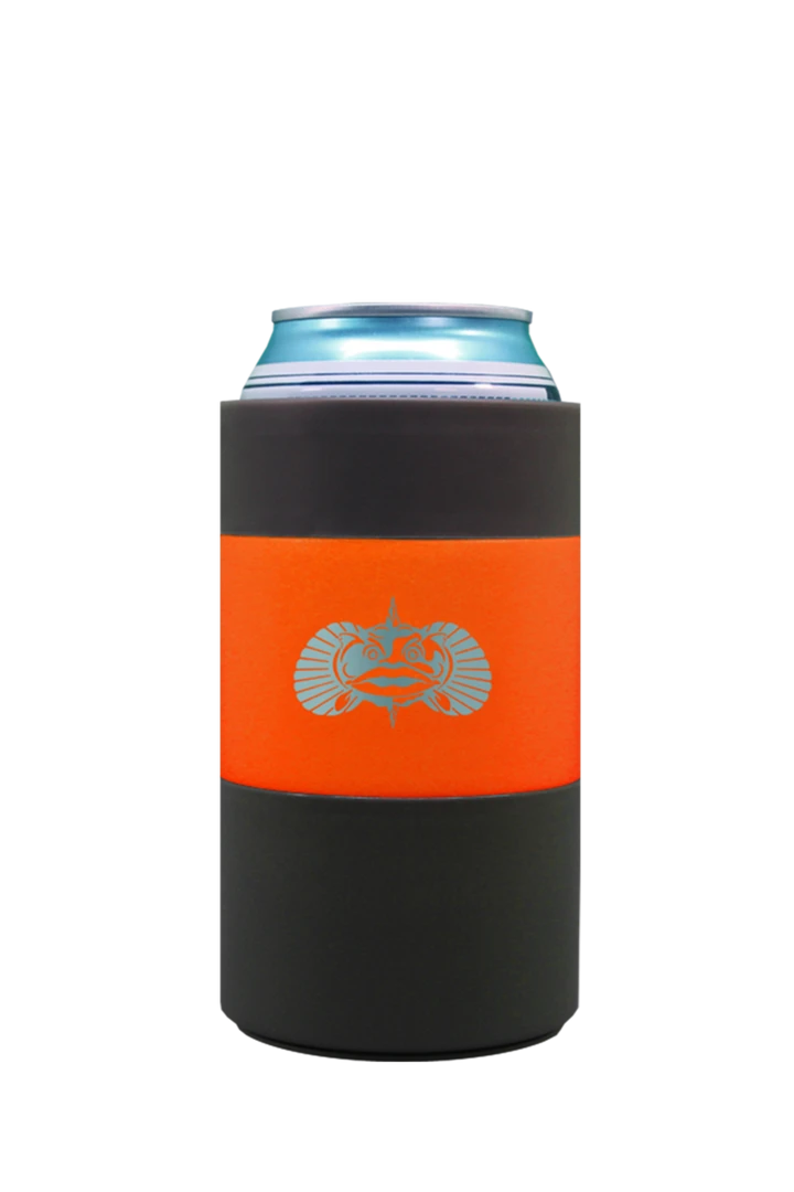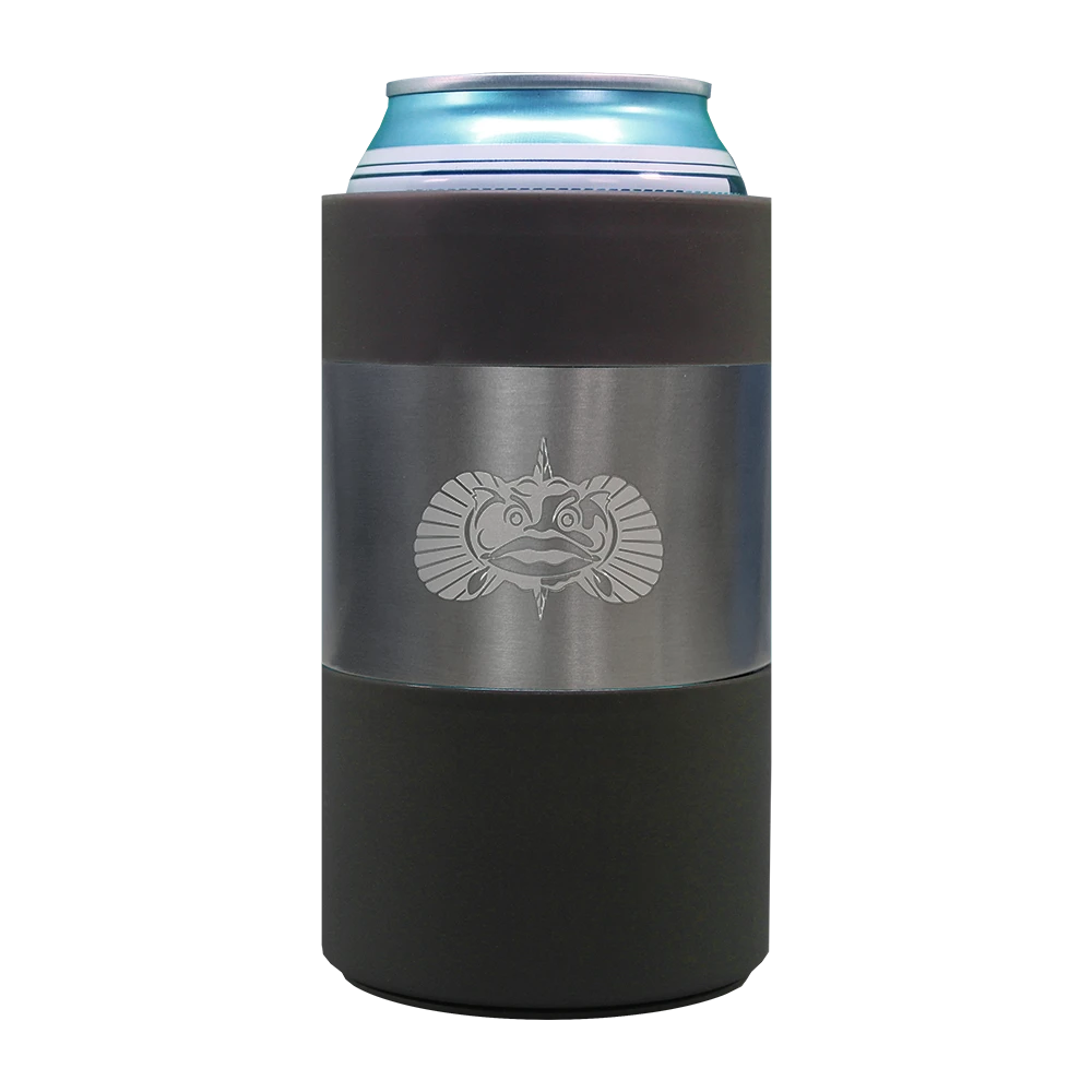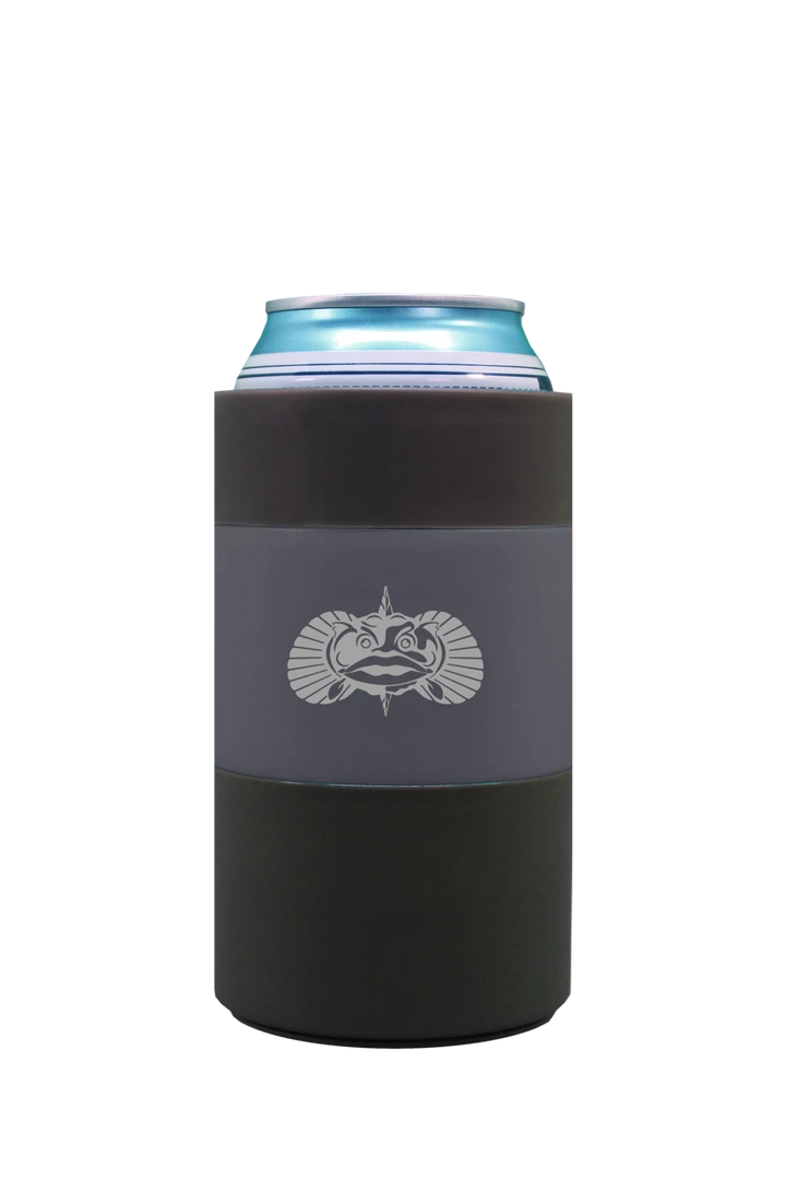- The Toadfish Can Cooler has a suction cup that allows it to stay upright while being hit or rocked. Simply place The Can Cooler on any smooth surface and it will keep your drink in place (securely up-right). To remove simply lift straight up.