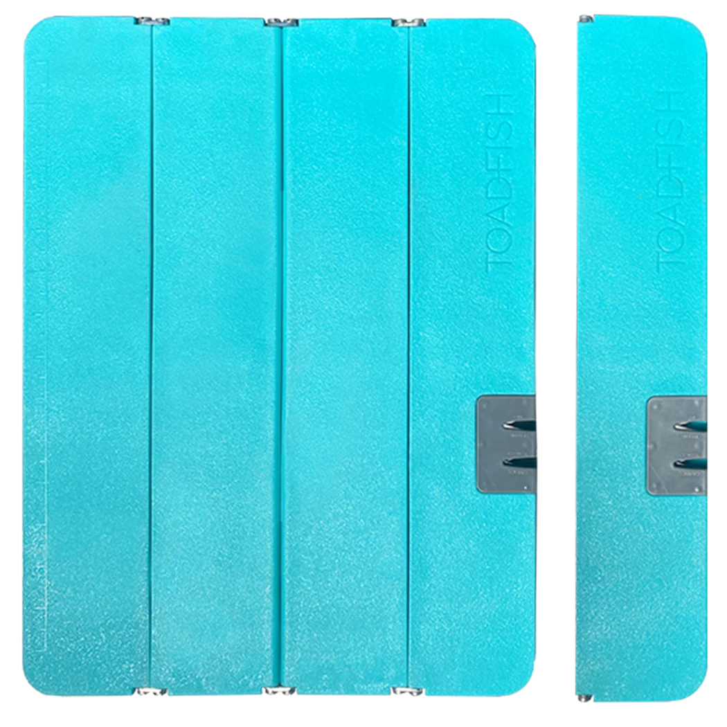 Full size 12’’x16’’ folding cutting board designed to easily fold, lock, and stow anywhere. Fits easily into kitchen drawers, boat boxes, tackle bags, and travel packs. When unfolded, it locks together to match the feel of a 1-piece design. Features non-slip rubber feet to grip any surface and a built-in knife sharpener so you’re never left with a dull blade. Toadfish is on a mission to ensure sustainable ecosystems. With every product sold, we are replenishing the population of inshore species like redfish, trout, cobia, tarpon, & flounder through donations to fish hatcheries across the United States. Let’s Put ‘Em Back®!