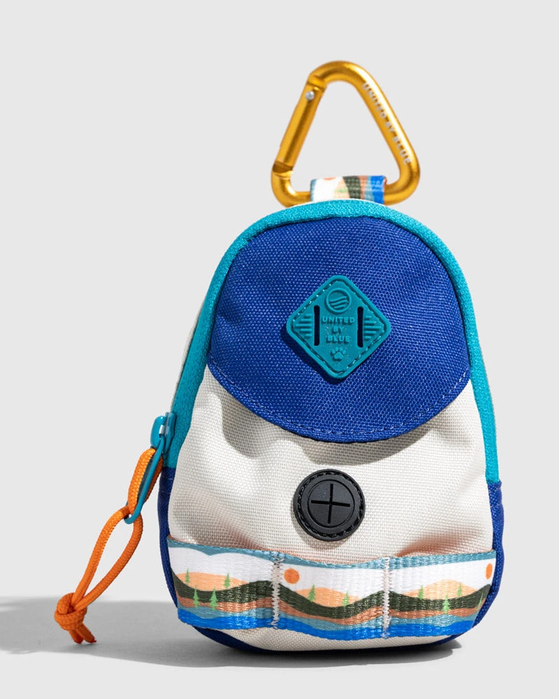 Like a tiny backpack for your pup. This ultra-convenient bag has a zipper compartment for waste bags and treats, a rubber dispenser for bags, and a handy back loop for hands-free attachment. Crafted from durable recycled polyester to last you and your pal years of adventures together.