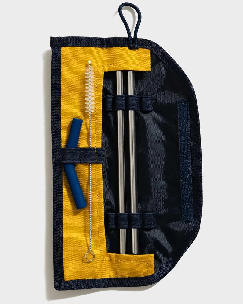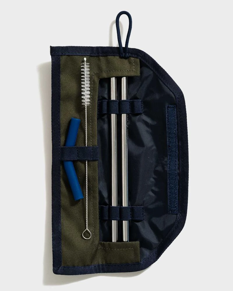 - Two stainless steel straws, a silicone tip and a bristled cleaning brush