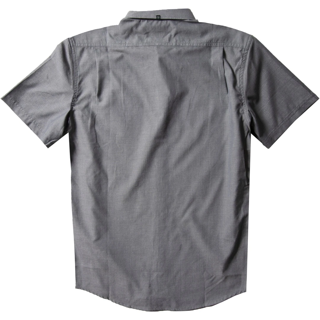 Cotton/recycled poly oxford SS woven. Sewn in center front placket and front chest pocket with Vissla logo embroidery. Garment washed with softener + enzyme.